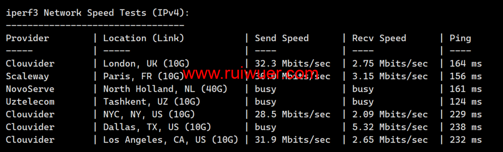 Iperf3欧美地区的节点的测试: