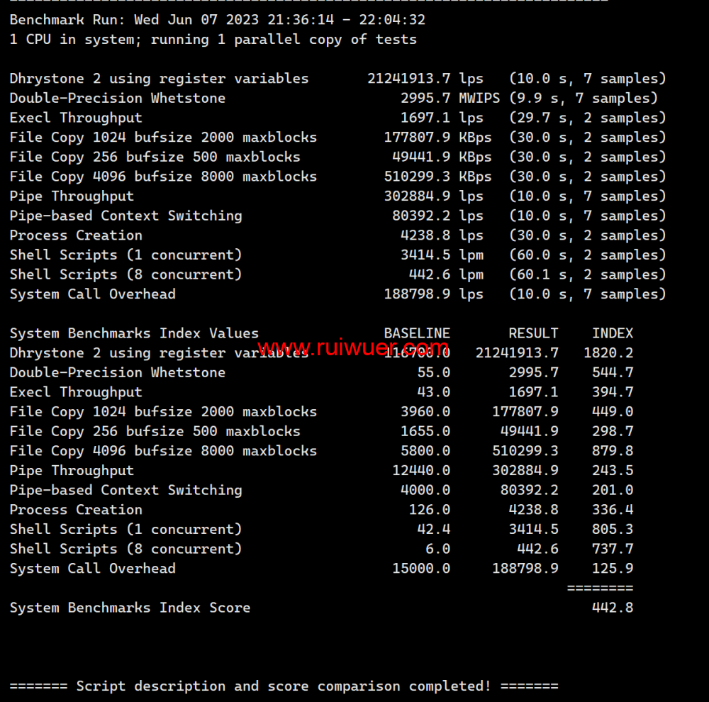 Unix bench Mark性能跑分测试: