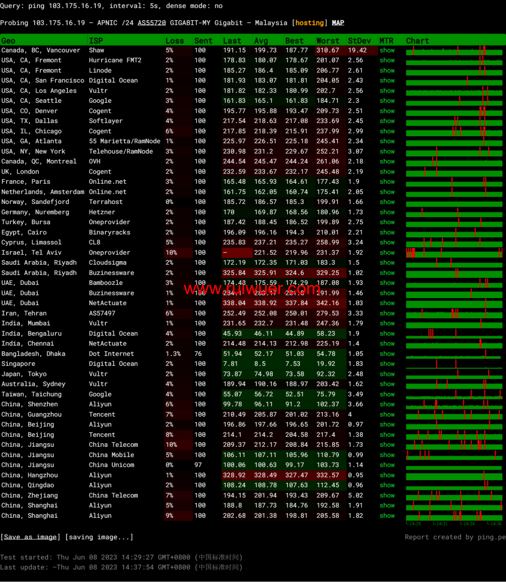 全球丢包测试: