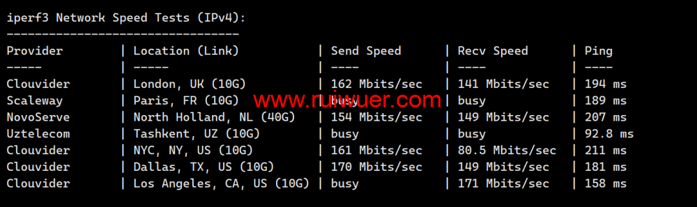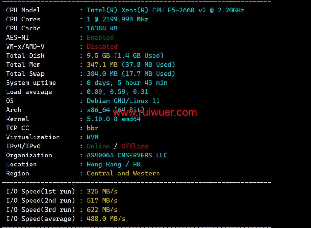 | 1核 | 512M DDR4 | 6G SSD/Raid10 | 500G/月@100Mbps CMI | 1个普通ip | $8.00/月 | 链接 |