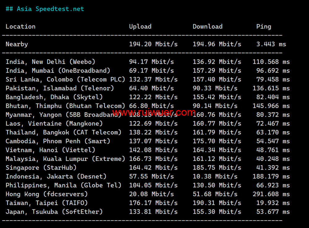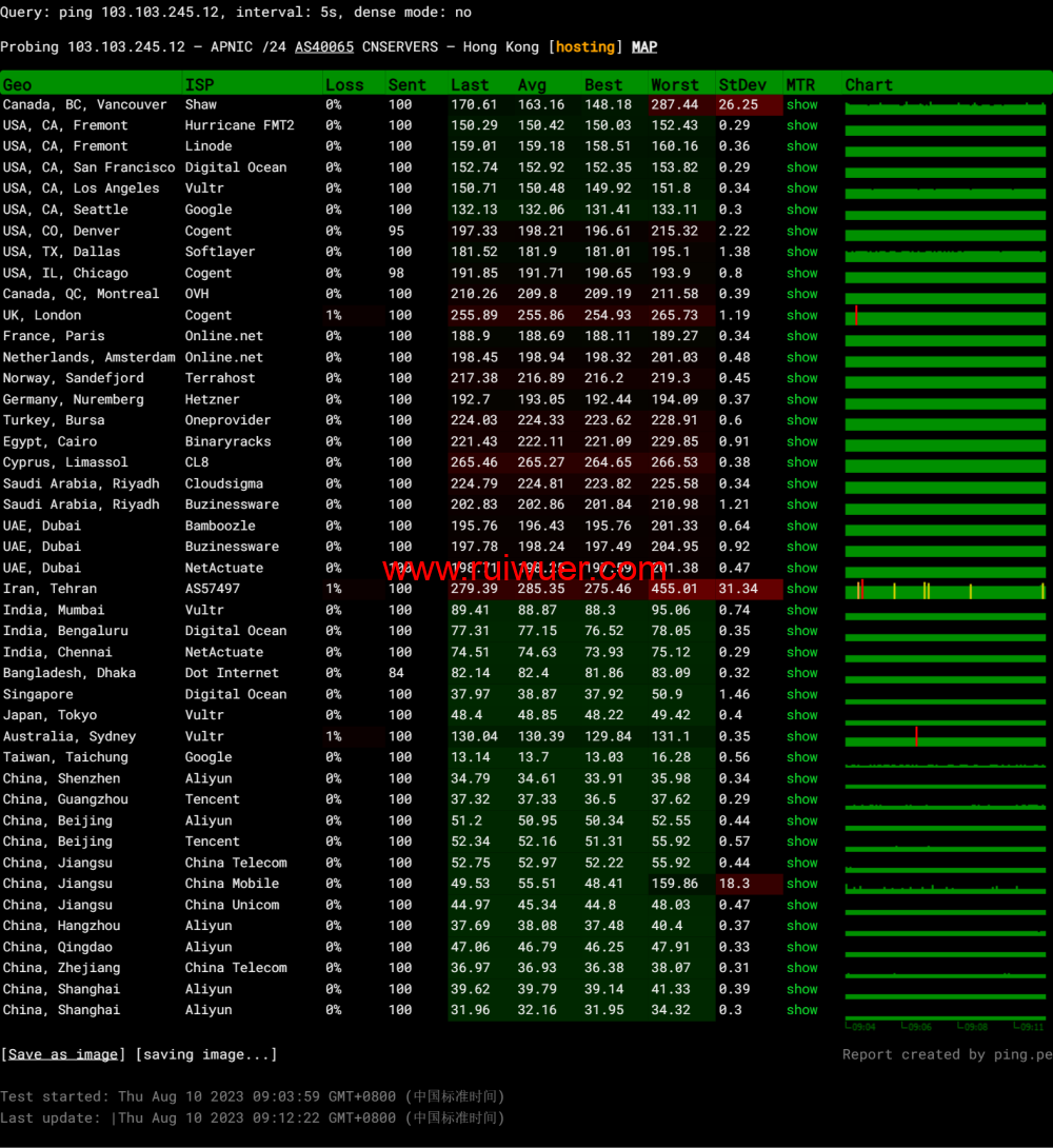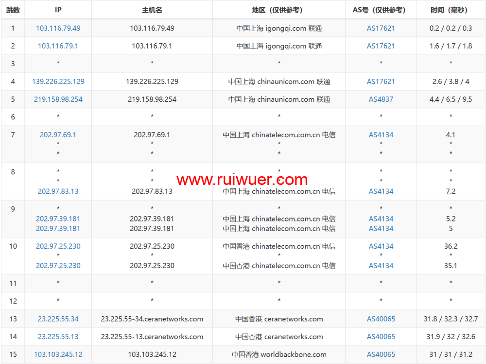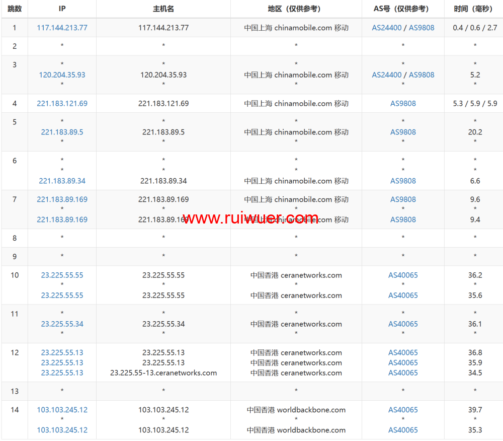 2023/08/10 04:47:49 正在测试三网回程路由... 2023/08/10 04:47:50 北京电信 219.141.136.12 移动CMI [普通线路] 2023/08/10 04:47:50 北京联通 202.106.50.1 移动CMI [普通线路] 2023/08/10 04:47:50 北京移动 221.179.155.161 移动CMI [普通线路] 2023/08/10 04:47:50 上海电信 202.96.209.133 移动CMI [普通线路] 2023/08/10 04:47:50 上海联通 210.22.97.1 移动CMI [普通线路] 2023/08/10 04:47:50 上海移动 211.136.112.200 移动CMI [普通线路] 2023/08/10 04:47:50 广州电信 58.60.188.222 移动CMI [普通线路] 2023/08/10 04:47:50 广州联通 210.21.196.6 移动CMI [普通线路] 2023/08/10 04:47:50 广州移动 120.196.165.24 移动CMI [普通线路] 2023/08/10 04:47:50 成都电信 61.139.2.69 移动CMI [普通线路] 2023/08/10 04:47:50 成都联通 119.6.6.6 移动CMI [普通线路] 2023/08/10 04:47:50 成都移动 211.137.96.205 移动CMI [普通线路] 2023/08/10 04:47:50 湖南电信 36.111.200.100 移动CMI [普通线路] 2023/08/10 04:47:50 湖南联通 42.48.16.100 移动CMI [普通线路] 2023/08/10 04:47:50 湖南移动 39.134.254.6 移动CMI [普通线路]