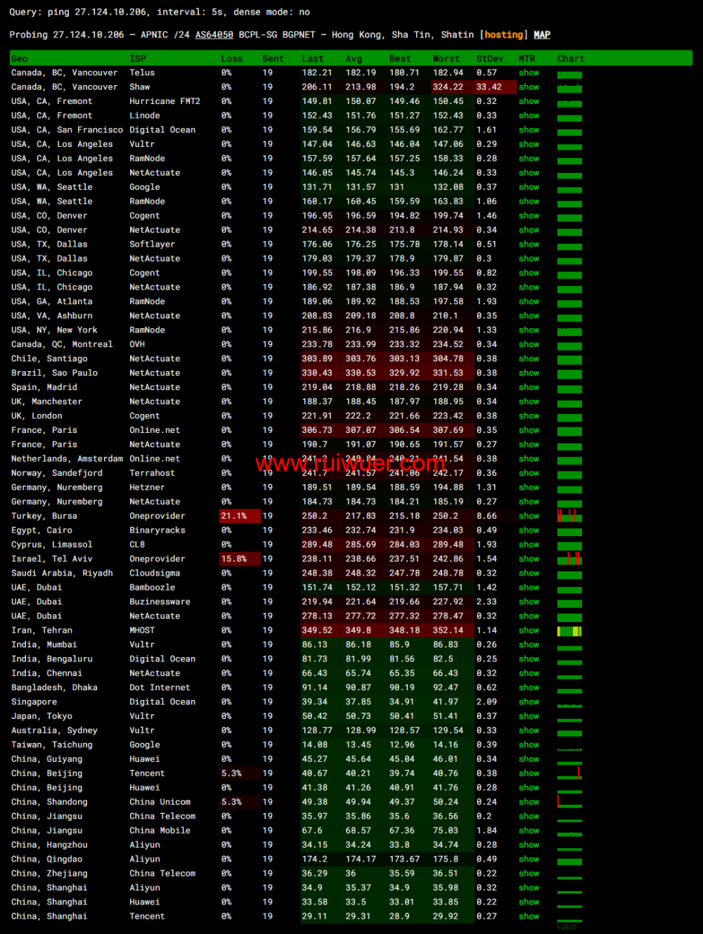 可以看到全球各地网络稳定性还是相当不错的,不管是海外节点还是国内节点基本都没有丢包的情况,网络还是相当可以的。HopeIDC在网络稳定性和性能方面具有先进的硬件设施、高性能的数据中心网络、多重带宽接入、带宽保障与流量控制、网络质量监控与故障自愈以及完善的技术支持团队等优势,能够为客户提供稳定可靠的网络基础设施服务。