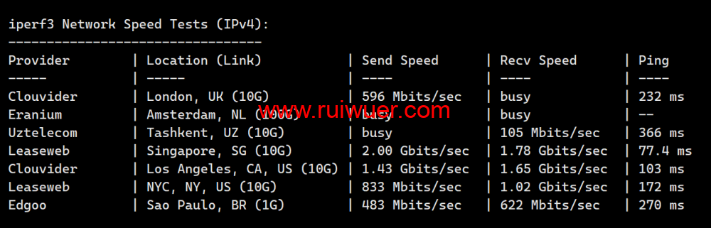 Iperf3欧美地区的节点的测试:
