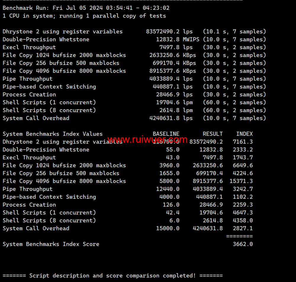 Unix bench Mark性能跑分测试:
