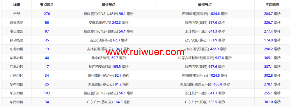 国内ping测试: