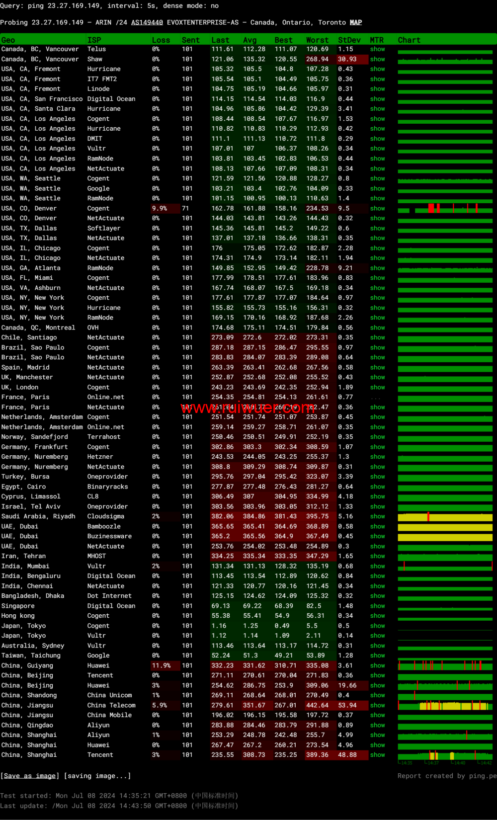 全球丢包测试: