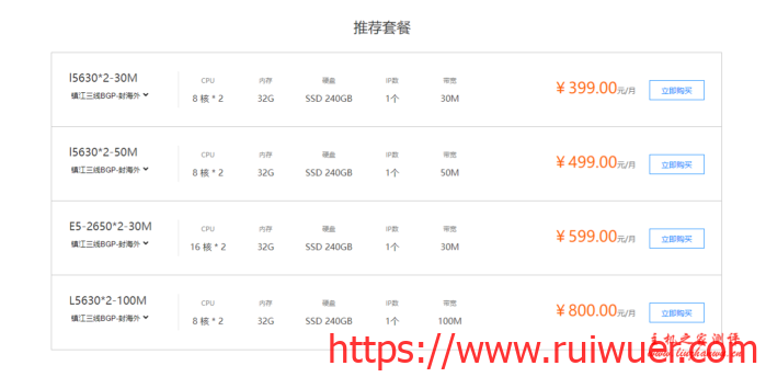 E5-2650*2 32核 32G 240G硬盘 30M带宽 50G防御 特价499元