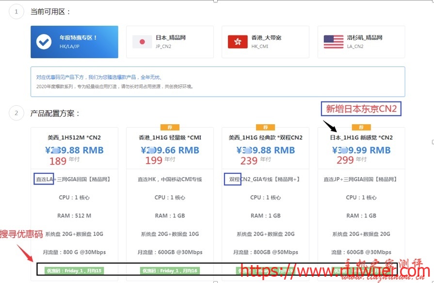 - 优惠码:LA2020或HK2020或JP2020,适用于全系月付产品。