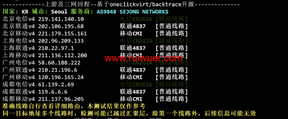 回程:电信:电信CN2GIA 联通:联通4837 移动:移动CMI