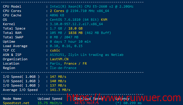 本次测试机器采用:GIA-B型(2H2G)数据均为实测,测试IP45.158.22.249