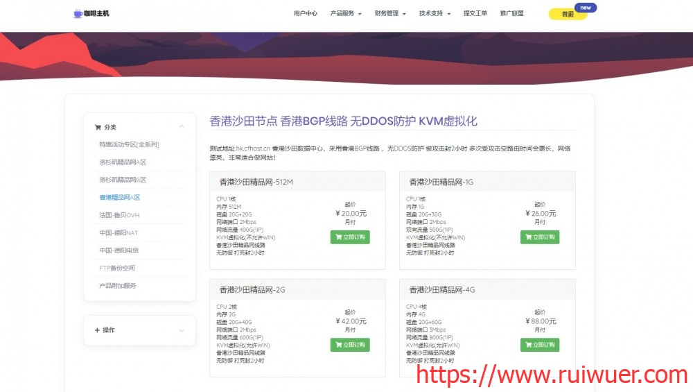 香港沙田的VPS位于香港沙田火炭机房,直连国内各大骨干网,延迟低,适合建站。咖啡主机家的香港vps是BGP线路的。商家支持付费更换IP,更换一次IP,收费15元,同时支持购买额外IP,价格为10元/个/月。硬盘空间和网络流量也可以额外购买。(2048M以上版本才允许windows系统):
