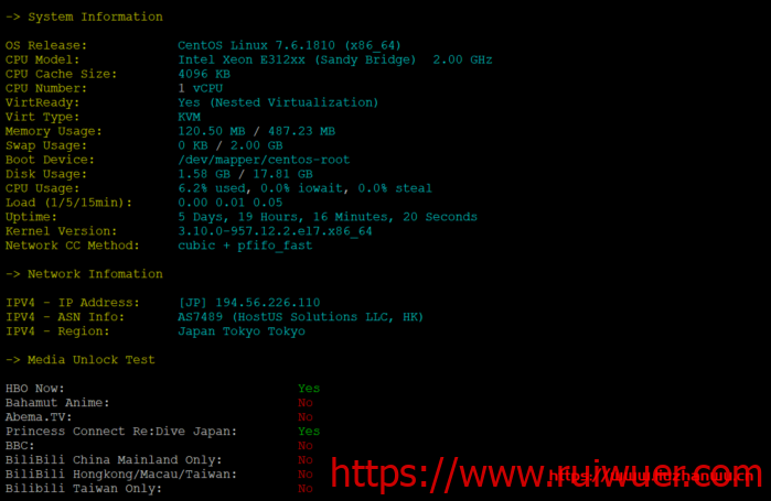 总结:机器方面中规中矩,水管非常小,只适合做个小博客,线路方面有一点看不懂,去程到香港,但是实际查询出来的IP为日本东京,线路方面倒是直连的,不知道啥时候路由会变。