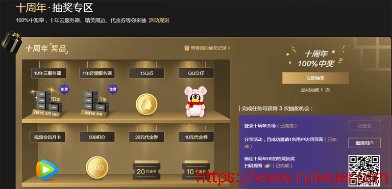 100%中奖率,十年云服务器、精美周边、代金券等你来抽