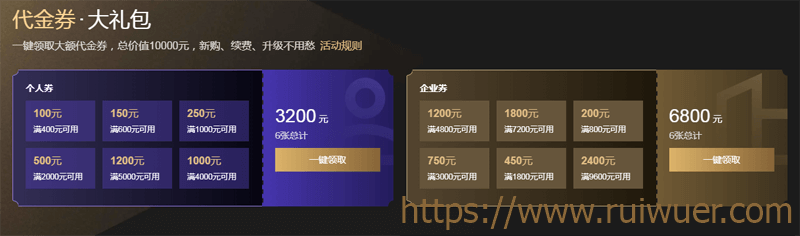 如果这里没有你心仪的套餐,可以领取代金券购买,最高可抵扣3200元,企业用户最高可抵扣6800元