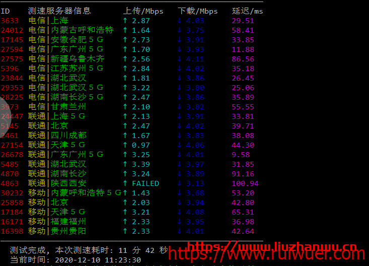 | 西南地区 | 23 | 重庆(电信) 29.4 毫秒 | 贵州贵阳(电信) 88.2 毫秒 | 45.1 毫秒 |