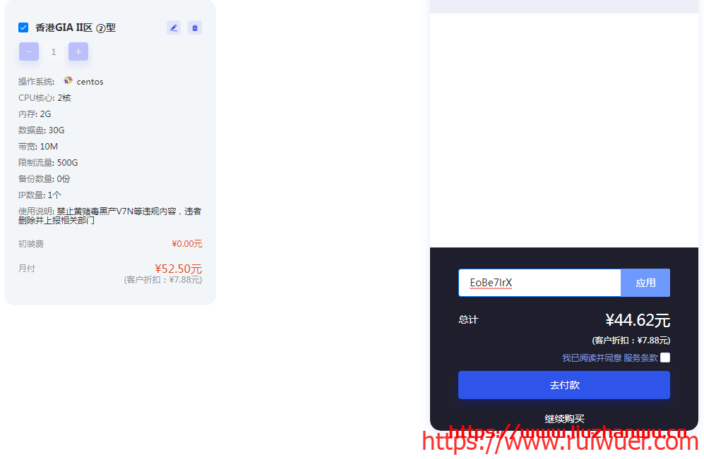 | 2核 | 2G | 50G | 500G | 10M | 香港GIA | ¥52.5/月 | 直达链接 |