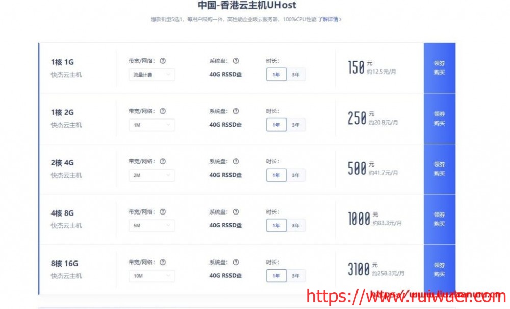 所有促销机房中国内访问速度最快的自然是UCloud香港机房,香港CN2 GIA线路,最低150元/年,450元/3年:
