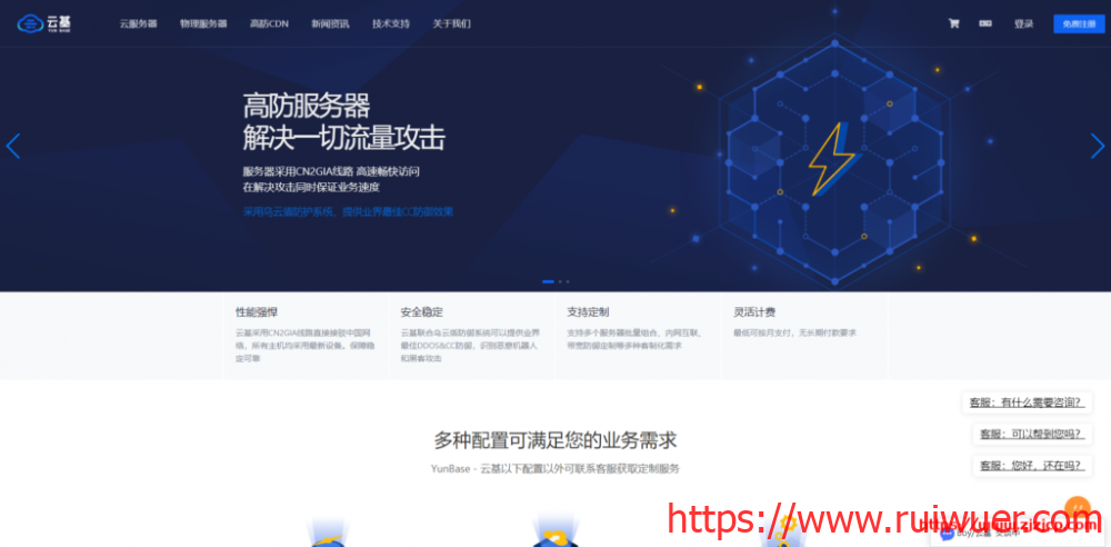 云基怎么样,云基好不好,云基(YUNBASE)成立于2020年,增值电信业务经营许可证等资质齐全,主要从事VPS及独立服务器销售,机房有中国香港、美国、欧洲等地,线路也包含采用广泛受欢迎且为广大企业及VPS玩家喜爱的CN2-GIA线路,延迟低,稳定性高堪比国内,用户体验的首选线路CN2GIA,超高防默认单机防御500G,无视CC攻击,亚太地区访问速度快速稳定,牛年来临之际,准备了大量优惠活动,有需要的,可以关注一下。