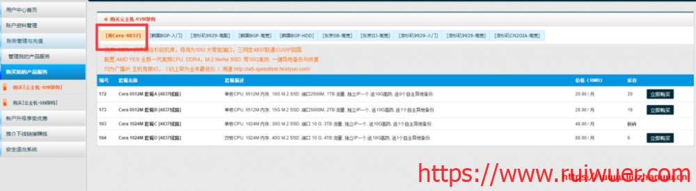 | 内存 | CPU | NVMe | 流量 | 带宽 | 价格 | 购买 |