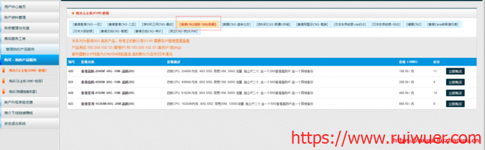 注册账号并登陆AoyoHost控制中心,如下图选择香港高防云主机即可。