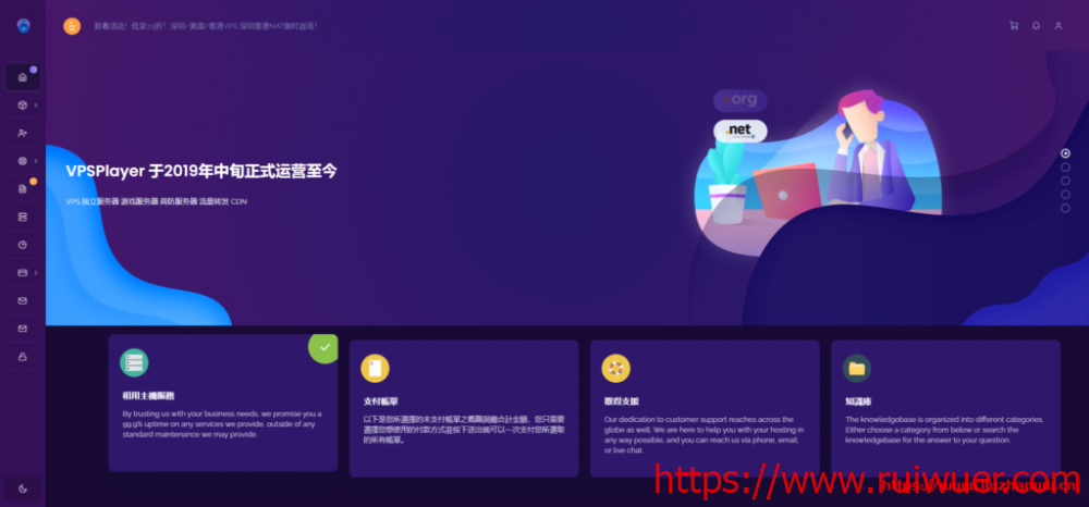 VPS玩家怎么样,VPS玩家好不好,VPS玩家,国人商家,2019年7月成立,初期主要经营香港CN2云服务器,现已开通深圳、洛杉矶区域。VPSPlayer全部产品均为KVM框架,真实硬件资源不超售,保障系统性能。现在洛杉矶Cera KVM VPS流量进行了调整,性价比更高。有需要的,可以关注一下。3月有特价年付KVM VPS。