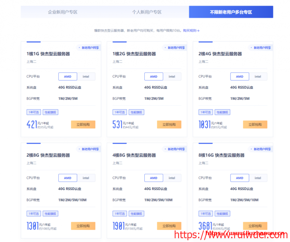 UCloud怎么样?UCloud好不好?网友们应该知道,关于UCloud全球大促活动内容。今天官方针对活动进行了改版上线,瑞吾尔测评这里就改版后的活动策略分享给大家,供参考选购。UCloud全球大促活动改版内容,主要可以概况为三点:新增AMD促销机型、新增首月体验活动和活动促销价格调整(低配机型年付,3年付的涨价了)。改版范围为个人及企业新用户活动及不限新老多台促销。由于篇幅有限,瑞吾尔测评这里就前两点为大家介绍下,更详细的活动情况可以前往UCloud官网活动页面查看。前两点的调整是在中国地区的云服务器促销内容上(海外地区和中国地区新老用户多台专区促销,本篇文章不作介绍),这里包括香港云服务器和台北云服务器。官方增加了[1个月]体验机型和AMD促销机型,1核2G内存40G RSSD系统盘1M BGP带宽配置,北上广可用区AMD机型首月4元或intel机型首月5元,香港台北可用区AMD机型首月10元或intel机型首月13元。企业新用户[1个月]体验机型与[1年/3年]机型,分别限购3台。个人新用户[1个月]体验机型与[1年/3年]机型,分别限购1台。