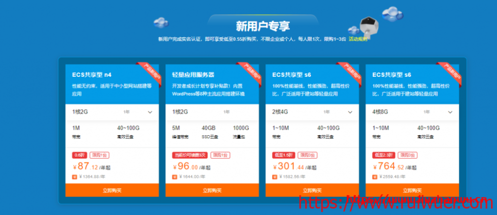 - 共享型s6:2核8G1~10M – 390.6元/年起(1015.56元/3年起)