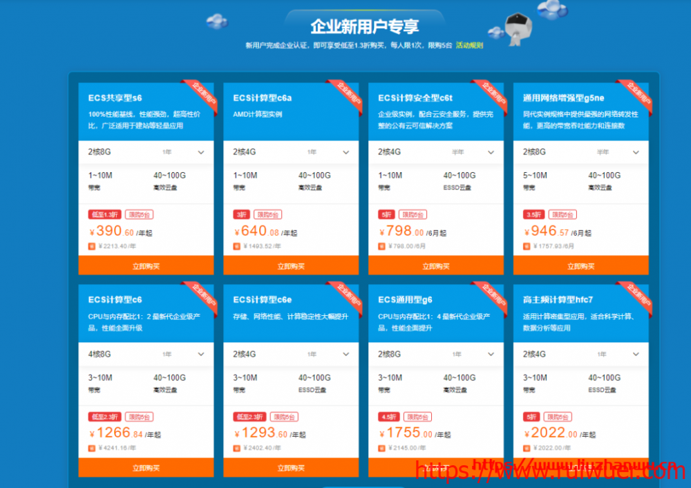 - 计算型c6e:2核4G3~10M – 1293.60元/年起(3880.80元/3年起)