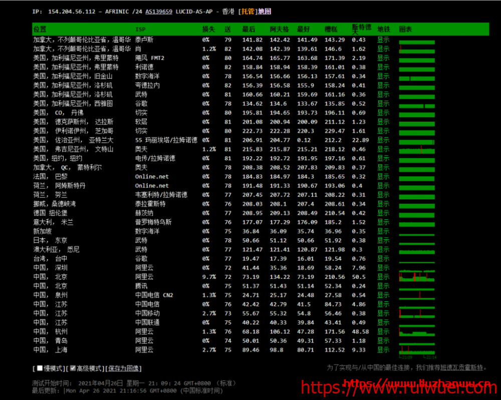 1 CN 120.195.6.129 0.0% 20 3.3 9.6 3.2 57.8 16.0 56046 CN CMNET-JIANGSU 120.195.6.129