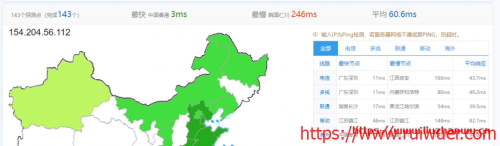 8 CN 59.43.130.110 70.0% 20 32.0 35.9 31.9 55.0 9.4 4809 CN CHINATELECOM-CN2 59.43.130.110