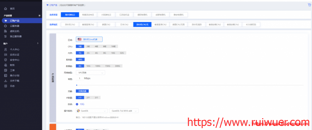 洛杉矶CN2的套餐分为大带宽限流和小带宽不限流两种套餐,全部为KVM虚拟架构,而且配置都可以弹性设置
