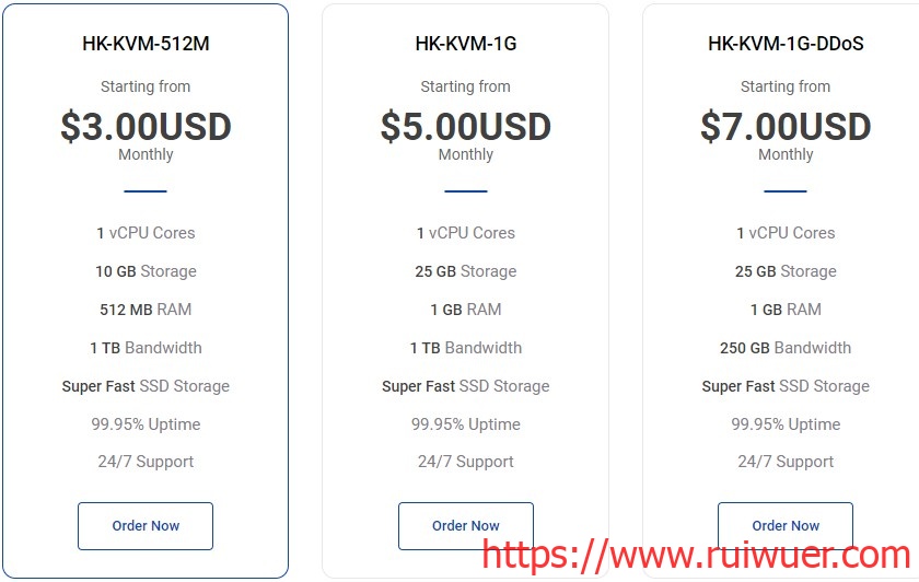 | HK-KVM–512M (有反馈流量为250GB) | HK-KVM-1G | HK-KVM-1.5G |