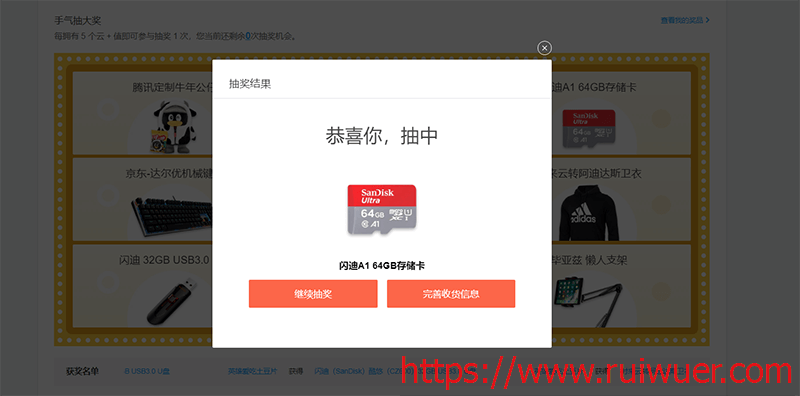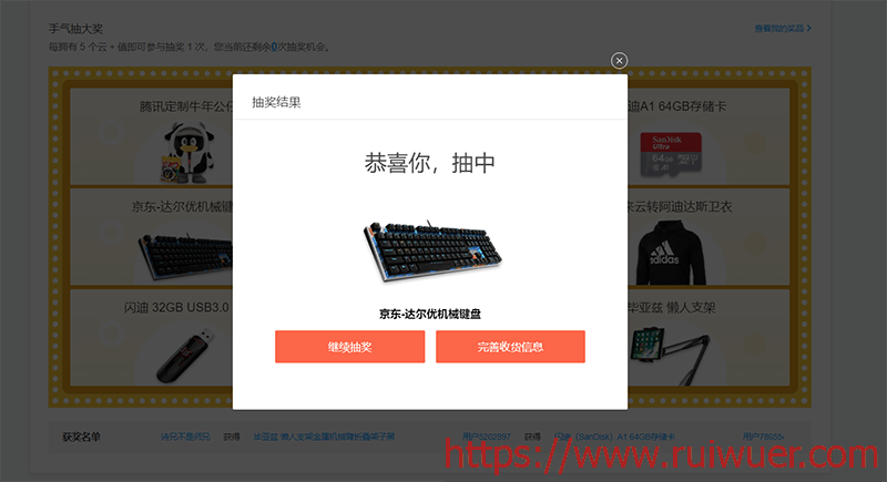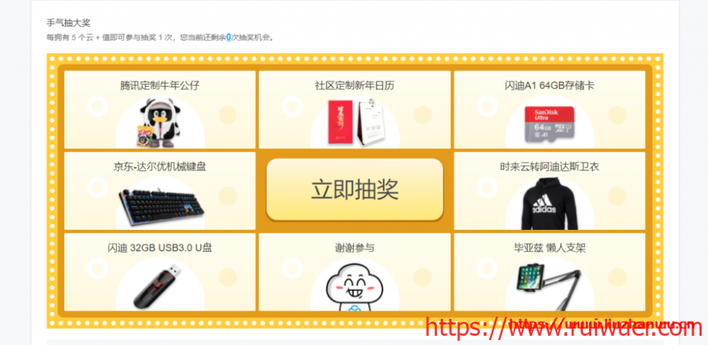 前两天有一个腾讯云有的无忧互助活动,相信很多伙伴才参加了,这个活动是每天都可给别人助力的,都可以满相应的代金券,站长的运气没有多好,最多给的是一张50的券,不过这个无忧的轻量应用服务器是可以按天购买的,LOC有相应的教程,就是所有的代金券得了可以不额外花钱购买,不过商家还有一个抽实物的活动,这个活动中奖的几率还是比较高的,站长搞了一个卡,不过其他朋友有中两个键盘的,简单的做一下任务就可以完成,如果你的朋友比较多,让他们点击链接登陆一下QQ号,不需要做任何其他的操作就可以帮你增加抽奖次数,大家快上吧!