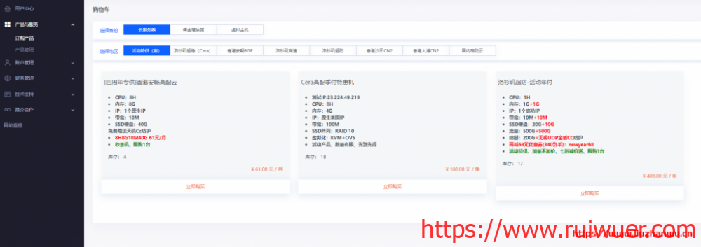 六一云互联怎么样,六一云互联好不好,时值六一云互联成立四周年之际,商家特意奉上了三款活动特供(惠)机器,以感谢广大新老用户的厚爱。三款机器分别是[四周年专供]香港安畅高配云:8H8G10M40G 61元/月;Cera高配季付特惠机:8H4G100M,KVM+OVS虚拟化,¥ 188.00元/季;洛杉矶超防-活动年付:1H2G20M,1000G月流量,200G+无视UDP金盾CC防护,¥408.00元/年。