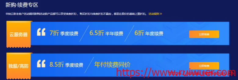 华纳云新老客户活动期间新购活动款产品都可以享受续费折扣。