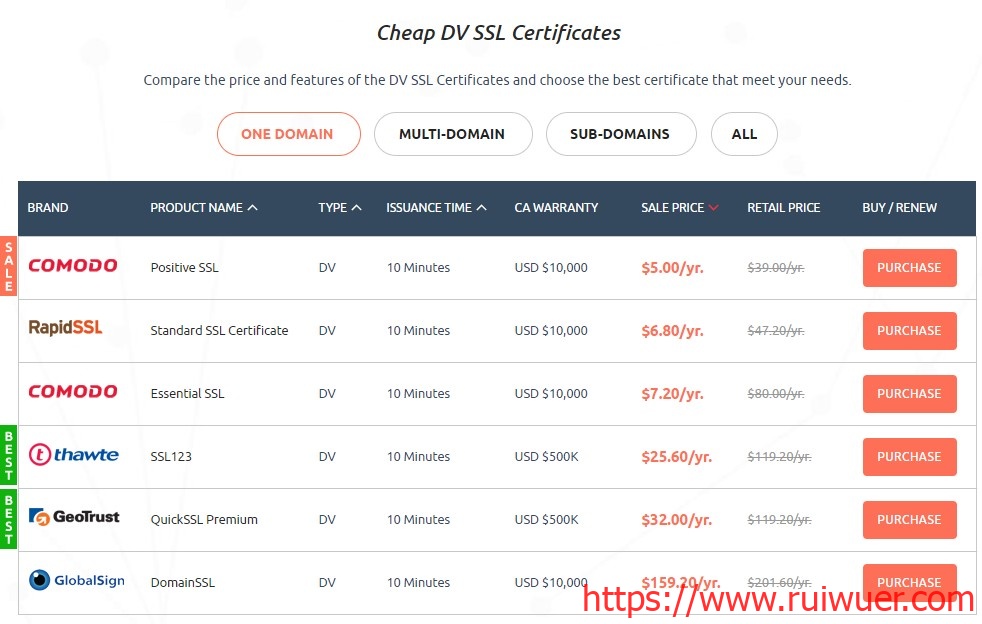 域名验证的证书:https://www.cheapsslshop.com/domain-validation-certificates