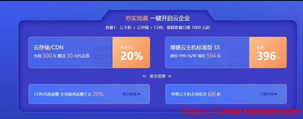 套餐1:云主机 + 云存储 + CDN,基础套餐只要 1000 元起