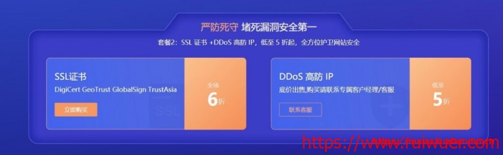 套餐2:SSL 证书 +DDoS 高防 IP,低至 5 折起,全方位护卫网站安全