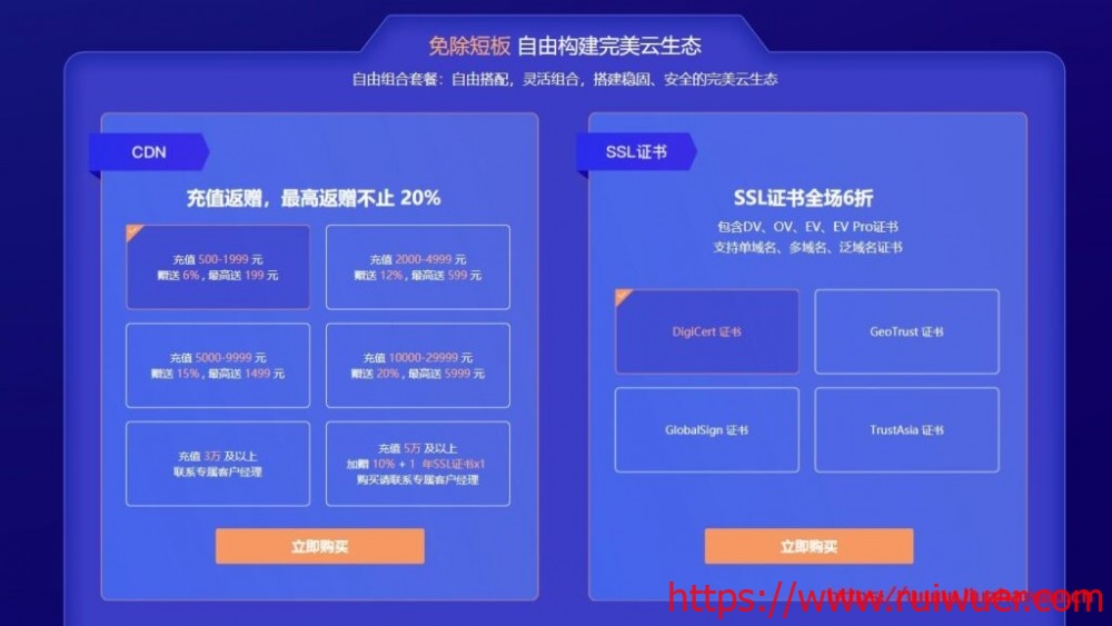 自由组合套餐:自由搭配,灵活组合,搭建稳固、安全的完美云生态