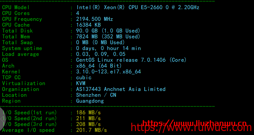 Intel E5-2660 E5-2680V2 E5-2690V4*2随机分配,站长弄到的是CPU E5-2660的CPU,4核8G8M的套餐,就是月付140元的套餐,默认硬盘是40G,站长拿到的加了配置
