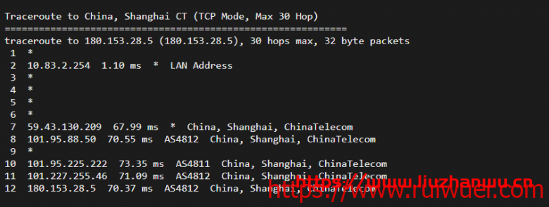 回程,到大陆电信:北京、海、广州方向都是走CN2