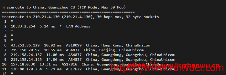 回程,到大陆联通:直连
