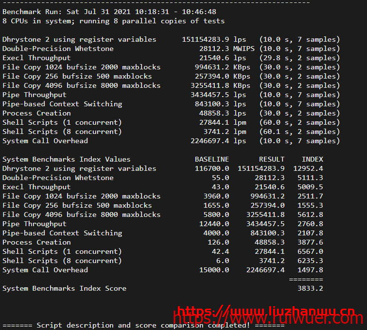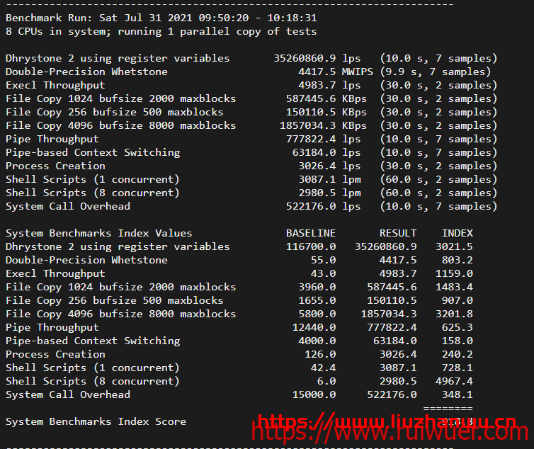 Unix bench Mark,e3-1240L比较弱鸡: