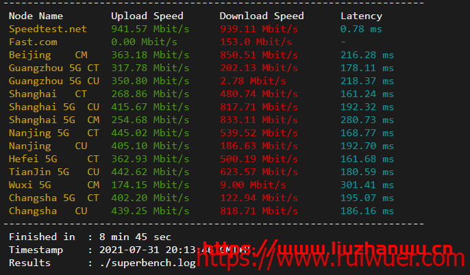 speedtest晚上测试的,上行最高445Mbit/s,下行最高818Mbit/s