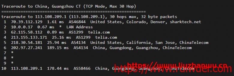 回程,到国内电信:广州,北京方向163,上海方向直连