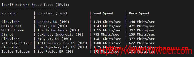 总结:机器性能带宽很是优秀,线路直连,在高峰有一定影响,总体表现还是可以的