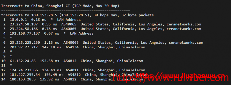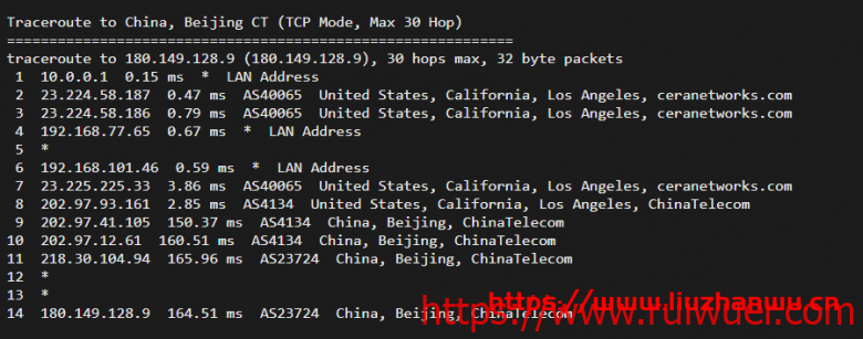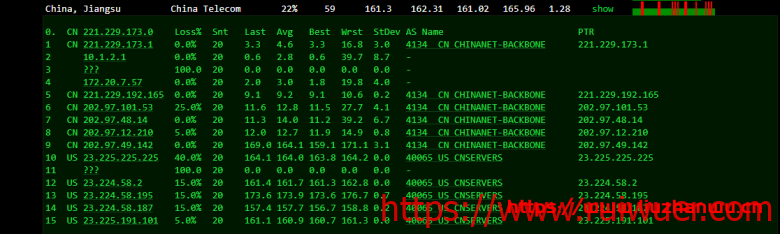 电信去程,骨干网络直达美国