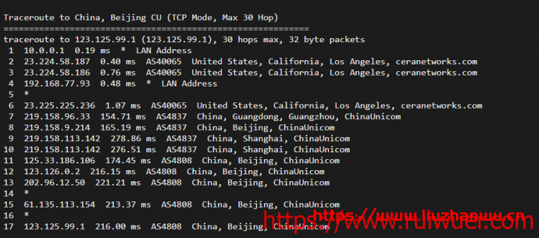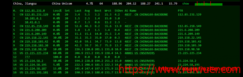 联通去程,骨干169直达美国