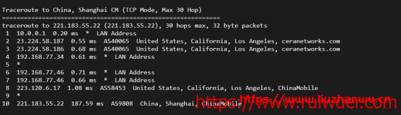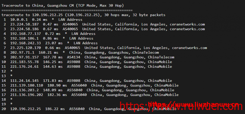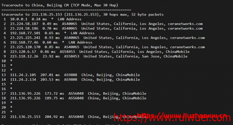 移动回程,北京、上海方向直连国内,广州方向,有走电信在连移动