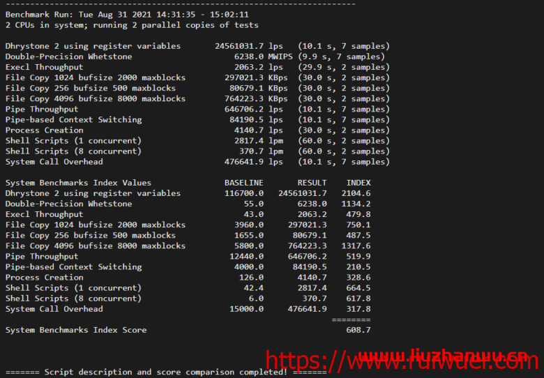 下面是测试结果,测试所需时间根据 VPS 或者服务器的性能来定,一般都需要几十分钟甚至几小时。